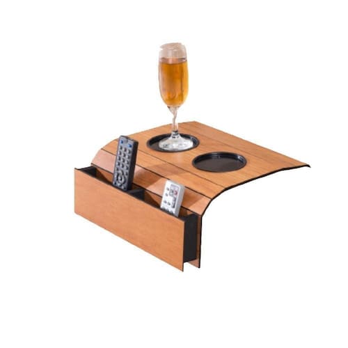 Bandeja Esteira Para Braço De Sofá Cor Cinamono Com Porta Controle