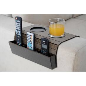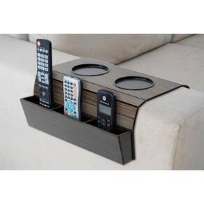Feita de um material resistente e durável, a esteira se encaixa facilmente, adaptável a qualquer tipo de braço de sofás, por ser dobrável, oferecendo uma superfície plana e estável para colocar seus objetos pessoais.