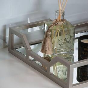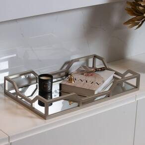 A Bandeja Multiuso Elizabeth Espelhada, de formato retangular, é confeccionada em aço inox, apresentando uma base espelhada e laterais vazadas. Com matéria-prima de alta durabilidade e resistência, este produto foi projetado pensando naqueles que valorizam design, charme e detalhes estéticos em sua rotina.