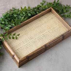 Bandeja Madeira Bambu com Sisal Natural WoodArt 38x24cm