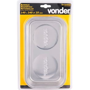 Bandeja Magnética Retangular 140x240mm Vonder Conteúdo da embalagem 1 Bandeja magnética Aplicações e dicas de uso Indicada para armazenagem de pequenas peças e componentes metálicos, tais como: parafusos, pregos, porcas e grampos Destaques e diferenciais Possui base com placa magnética DETALHES TÉCNICOS