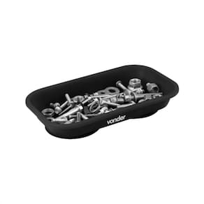 Especificações: - Marca: Vonder; - Modelo: 3599240140; - Material da bandeja magnética: Plástico; - Formato: Retangular; - Base: Magnética; - Tamanho: 140 mm x 240 mm; - Profundidade da bandeja magnética: 30 mm; - Peso: 0,635 kg; - Indicada para armazenagem de pequenas peças e componentes metálicos, tais como: parafusos, pregos, porcas e grampos;