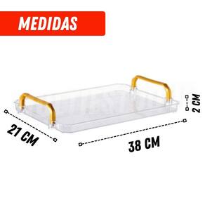Bandeja multiuso grande em acrílico com alça Você já se sentiu incomodado ao tentar arrumar sua casa e notar que os itens estão sempre fora do lugar Sem uma solução eficiente, a desordem pode se acumular, tornando o ambiente menos agradável e funcional. A bandeja com alça grande em acrílico é a solução ideal para quem procura elegância e praticidade com um design contemporâneo e acabamento transparente, ela não apenas serve bebidas e petiscos com estilo, mas também organiza perfumes, maquiagens e itens decorativos. Seu visual clean se adapta a qualquer decoração, trazendo sofisticação e funcionalidade para o seu cotidiano. Benefícios - organiza diversos itens de maneira prática - design elegante que complementa a decoração - leve e fácil de manusear - fácil de limpar e durável Especificações técnicas - composição: acrílico resistente - dimensões aproximadas: comp: 38cm x larg: 21cm x alt: 2cm / alça: comp: 13cm acompanha parafusos - cor: transparente Conteúdo da embalagem - 01 bandeja com alça grande multiuso em acrílico Não perca a chance de transformar a organização da sua casa adquira já a bandeja e traga mais estilo e praticidade para o seu lar Informações importantes sobre a compra - com de fábrica Dúvidas frequentes: 2 - em quanto tempo meu pedido será enviado 3 - é seguro realizar esta compra Resposta: desde a fundação da nossa empresa, temos milhares de clientes satisfeitos em outras lojas online. Somos uma loja oficial neste marketplace. Além das garantias da plataforma, oferecemos também de fábrica. 4 - os produtos têm Resposta: sim, oferecemos de 30 dias em todos os nossos produtos. Se houver qualquer problema, resolveremos da melhor forma possível. 5 - esta compra é segura Resposta: sim, garantimos total segurança na sua compra e a privacidade dos seus dados. 6 - e se eu não gostar do produto, terei meu dinheiro de volta Resposta: de acordo com o cdc código de defesa do consumidor , todo cliente de compras online tem até 7 dias para devolver o produto em caso de arrependimento, sem custo na devolução. Você será reembolsado em 100% do valor da compra. Se você tiver alguma dúvida, envie-nos uma mensagem e responderemos o mais rápido possível.
