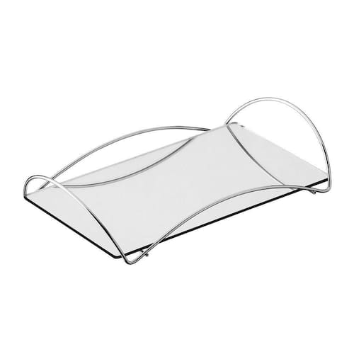 A Bandeja Multiuso Hara Bia é um produto estruturado em aço com base em espelho e laterais vazadas. Possui matéria-prima de alta durabilidade e resistência. É um produto criado especialmente para aqueles que não abrem mão do design, charme e da beleza dos detalhes em seu dia a dia.