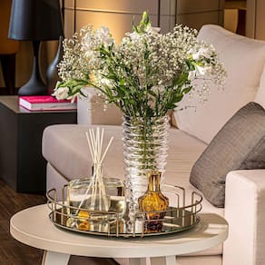 Ótima opção para organização e decoração de sua casa. Refinadas e elegantes, são ideais para as bancadas do lavabo e banheiro, aparadores das salas de jantar e estar ou ainda do hall de entrada. Produto fabricado no Brasil com materiais que evitam o desgaste ou oxidação ao longo do tempo. Qualidade que faz toda a diferença em sua decoração!