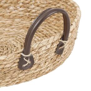 Bandeja De Seagrass Redonda Com Alça De Couro M -
