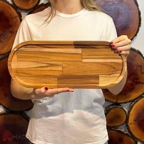 A madeira teca é conhecida há mais de 500 anos, no passado era utilizada na construção naval devido a sua resistência contra água e ações do tempo. Ela se destaca por sua rigidez e coloração variada, motivos estes que elevam seu preço no mercado e a tornam uma madeira nobre em diversos países do mundo. Hoje em dia é utilizada na produção de artigos para decoração, churrasco, entre outros nichos. Estes são alguns dos motivos que fazem a ;Bandeja Oval em Madeira Teca - Stolf um produto especial e indispensável na sua casa.