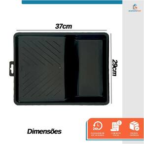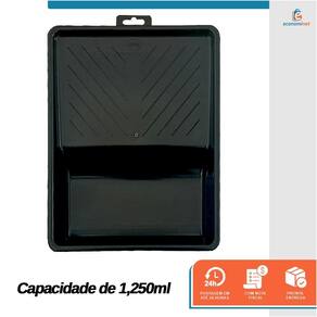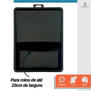 A Bandeja para Pintura Grande da Compel é uma opção sustentável e resistente, feita de plástico polipropileno reciclado. Com capacidade de 1,250ml e medidas de 37,1cm x 29,6cm, ela é adequada para rolos de até 23cm de largura. Seu design robusto e elegante proporciona eficiência e precisão durante a pintura, tornando-se uma escolha prática e ambientalmente consciente.Com a Bandeja, você terá uma ferramenta confiável e prática para suas atividades de pintura, combinando sustentabilidade, capacidade generosa e design inteligente para facilitar sua experiência criativa.Indicação:Ideal para o acondicionamento de todos os tipos de tintas.Para rolos de até 23cm de largura .Limpeza e conservação:Após o uso, retirar o excesso de tinta.Para tintas a base de água lavar com água corrente e sabão.Para esmaltes sintéticos, óleos, vernizes ou zarcão, lavar com solvente mineral adequado e depois com água e sabão.Secar e guardar em local arejado.Especificações técnicas:Bandeja plástica injetada em plástico polipropileno reciclado, super resistente.Cor: PretaMedidas: 37,1cm x 29,6cmCapacidade: 1,250mlRef.: 2003147Marca: Compel