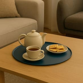 A bandeja redonda em aço esmaltado é a combinação perfeita entre elegância e funcionalidade.