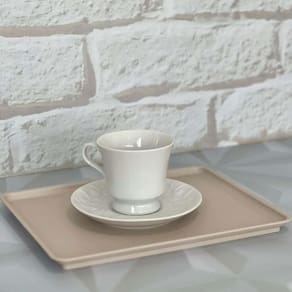 Bandeja Plástica para Servir 27x22cm Restaurante Refeitório Ou Flow Retangular Bege.