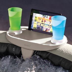 Transforme seu Spa INTEX em um espaço único, completando-o com nossa linha de acessórios para Spa INTEX. Com esta bandeja para bebidas equipada com luzes LED, você transformará seus momentos no Spa em algo exclusivo. Desfrute de momentos relaxantes com sua família e amigos enquanto aprecia sua bebida favorita. Além disso, as luzes LED embutidas proporcionam uma atmosfera especial durante o entardecer ou à noite. E não para por aí! A nova Bandeja porta copos INTEX Spa inclui um suporte para celular ou tablet, permitindo que você desfrute ainda mais de seus momentos de relaxamento.
