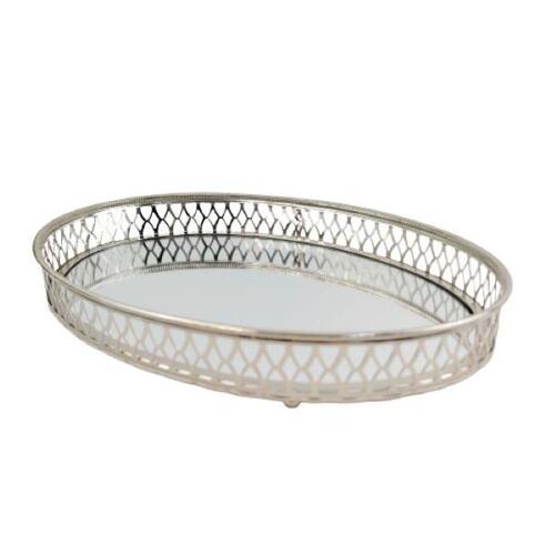 Bandeja Prata Losango 5x30x21cm Com Espelho Oval Vem decorar, seja INIGUAL