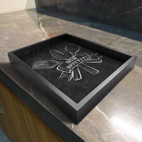 Atualmente, objetos decorativos tem cada vez mais ganhado seu espaço e se tornando indispensáveis na decoração de nossos lares, escritórios, consultórios e afins. Peças decorativas com funcionalidade são a combinação perfeita para os amantes da decoração e da praticidade. Por isso apresentamos para vocês a Bandeja Preta com Gravura "Bon Appetit", além de ser impermeável, possuí um visual moderno e traz consigo um conceito muito utilizado atualmente na arquitetura e decoração de ambientes, esse item sem dúvidas agregará requinte e muito estilo ao seu espaço. São muitas qualidades para um produto. Adquira já o seu! Dimensões Altura: 3 cm; Largura: 31 cm; Profundidade: 41 cm; Especificações do Produto Estrutura: MDF; Garantia: 90 dias contra defeito de fabricação; Montagem: O produto vai montado; Instruções de Limpeza: Utilizar um pano limpo e levemente úmido; Você irá receber: 01 volume; Observações Relevantes - Todos os produtos vão embalados com total segurança; - As cores dos produtos podem sofrer alterações dependendo do seu monitor; - As imagens são meramente ilustrativas, não acompanham objetos de decoração e eletros; - Confira as dimensões do produto no momento da compra e certifique-se de que passará normalmente por escadas, elevadores, portas e corredores. - Não nos responsabilizamos no ato da entrega por montagens, desmontagens, instalações de produtos, nem utilização de guinchos ou equipamentos similares para acesso a pisos superiores em apartamentos. - Observando as orientações acima, evita-se futuros desagrados ou imprevistos com a entrega do produto. Havendo despesas adicionais, serão de responsabilidade do cliente.