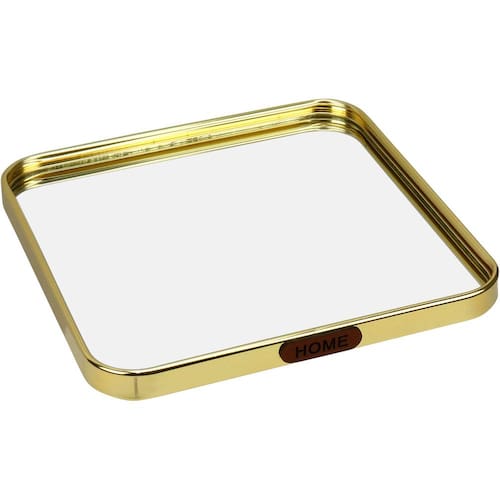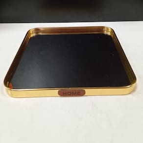 BANDEJA Altura: 1,5 cm Largura: 20,3 cm Profundidade: 20,3 cm Peso: 0,29 Kg Material: Metal Cor: Dourado