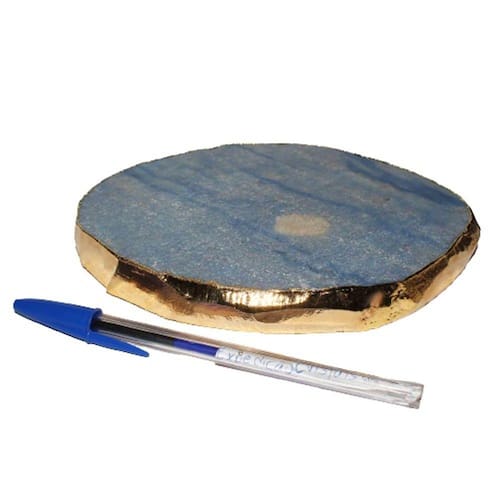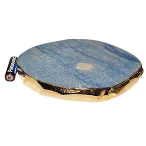 Bandeja de Quartzo Azul natural com 17 centimetros com borda dourada ideal para petisqueira e uma otima decoração Parte superior polida