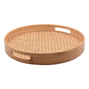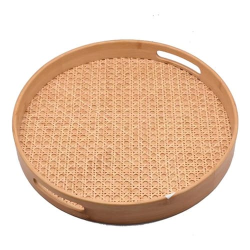 Bandeja redonda com design sofisticado, ideal para servir com estilo ou compor a decoracao de ambientes. Com 35 cm de diametro e 5 cm de altura, e feita em madeira de alta qualidade com detalhes em fibra natural, unindo elegancia e durabilidade. Versatil, pode ser usada para servir bebidas, organizar itens decorativos ou como centro de mesa. A combinacao de materiais confere um visual contemporaneo que se adapta a diferentes estilos de decoracao. Leve, resistente e facil de limpar.