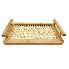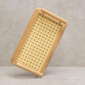 Bandeja Retangular de Bambu Textura Palha de Alça Decoração Bandeja Retangular Textura Com Alças Essa é a bandeja de bambu com alças e textura de palha retangular A bandeja é ideal para servir refeições ou até mesmo ser usada como suporte para utensílios. Produto fabricado em bambu natural, não prejudica o meio ambiente. Possui alças para segurar e transportar, além de toda facilidade oferecida pelo produto. Bacana para organizar objetos, perfumes, bijuterias, itens de higiene pessoal e também para servir comes e bebes. Ela combina com qualquer lugar da casa, do banheiro à cozinha. Dimensões do produto:Comprimento: 25cmLargura: 15cm Material: BambuItens Inclusos: - 01 Bandeja Bambu Marca: Panshopp