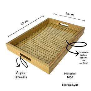 Bandeja retangular de mdf com fundo treliça e acrílico 35cm