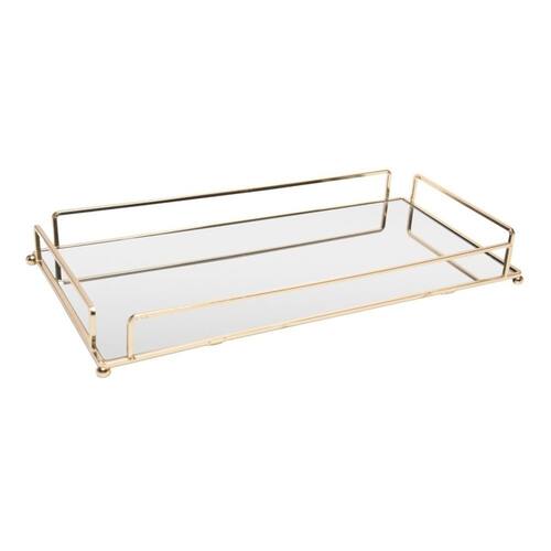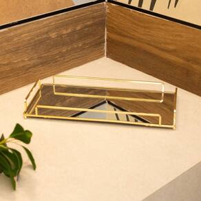 Bandeja Retangular Dourada em Metal C/Espelho Royal 34x16cm Wolff