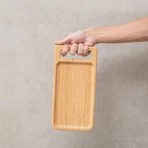 :: essa é a tábua de bambu retangular 30cm da OIKOS.:: versátil: bacana para cortar e servir carnes, legumes, pães, petiscos, sanduíches de metro e muito mais! :: dupla face: um lado conta com um relevo na borda e foi pensado para servir. o outro é indicado para cortar alimentos e preparar suas receitas preferidas. :: com alça: para facilitar o manuseio de transporte. :: decorativa: além de ser prática, ela também pode fazer parte da decoração – o tom natural deixa o ambiente mais rústico e charmoso. dá até para pendurar na cozinha ou junto da churrasqueira.:: feita de bambu: material leve e ecologicamente correto.:: durável e higiênica: o bambu é resistente e tem propriedades que evitam a proliferação de bactérias, só precisa lavar e secar de acordo com as recomendações, combinado?Dimensões do Produto:Comprimento: 30cmLargura: 15cmAltura: 1,6cm
