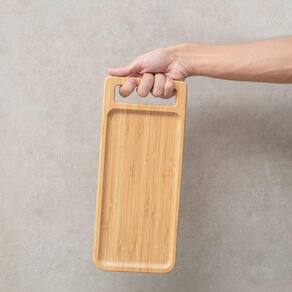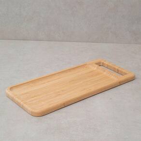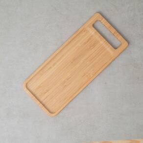 :: essa é a tábua de bambu retangular 35cm da OIKOS.:: versátil: bacana para cortar e servir carnes, legumes, pães, petiscos, sanduíches de metro e muito mais! :: dupla face: um lado conta com um relevo na borda e foi pensado para servir. o outro é indicado para cortar alimentos e preparar suas receitas preferidas. :: com alça: para facilitar o manuseio de transporte. :: decorativa: além de ser prática, ela também pode fazer parte da decoração – o tom natural deixa o ambiente mais rústico e charmoso. dá até para pendurar na cozinha ou junto da churrasqueira.:: feita de bambu: material leve e ecologicamente correto.:: durável e higiênica: o bambu é resistente e tem propriedades que evitam a proliferação de bactérias, só precisa lavar e secar de acordo com as recomendações, combinado?Dimensões do Produto:Comprimento: 35cmAltura: 1,6cmLargura: 15cm