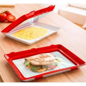 Bandeja Reutilizável para Conservar Alimentos Unyhome Com a bandeja para conservar alimentos da UnyHome, ficou muito mais fácil manter o alimento fresquinho por mais tempo Bandeja com papel filme elástico resistente embutido. Para usar basta colocar o alimento cozido ou não na bandeja e fechá-la Selar o alimento evita que bactérias e microrganismos se reproduzam, assim, sua comida dura mais e não perde os nutrientes.