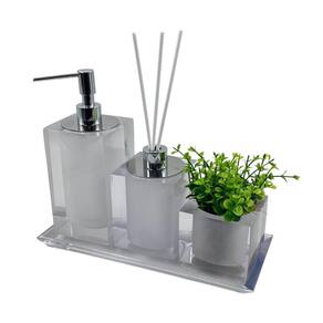 Uma peça versátil que eleva a organização e a estética de banheiros, lavabos e outros ambientes. Seu design minimalista em resina cristal adiciona um toque contemporâneo, mantendo seus itens organizados de forma elegante.