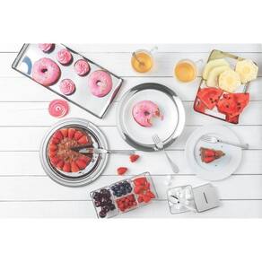 Totalmente feita de aço inox, altamente durável, mantém suas características , preservando a beleza, a higiene e a durabilidade do material. Design moderno e prático. Ideal para servir. Acabamento em alto brilho. Pode ser lavada diariamente na máquina de lavar louças.