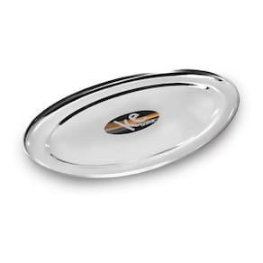 Bandeja Travessa Oval de Aço Inox para servir Porções 28,5 cmIdeal para servir alimentos e saladas com elegância servir porções em Buffet, bares, lanchonetes e restaurantes, ou até mesmo em almoço em família e/ou amigos. Por ser rasa a peça se torna ideal para servir pratos como arroz, camarão, batata, saladas e carnes.Marca: kehome;Material: Aço Inox;Comprimento: 28,5 cm;Largura: 17,5 cm;Ref: 3103-30. Ean: 7908630204207