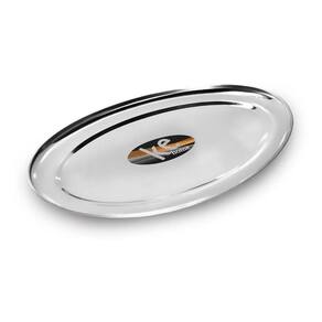 Bandeja Travessa Oval de Aço Inox para servir Porções 28,5 cmIdeal para servir alimentos e saladas com elegância servir porções em Buffet, bares, lanchonetes e restaurantes, ou até mesmo em almoço em família e/ou amigos. Por ser rasa a peça se torna ideal para servir pratos como arroz, camarão, batata, saladas e carnes.Marca: kehome;Material: Aço Inox;Comprimento: 28,5 cm;Largura: 17,5 cm;Ref: 3103-30. Ean: 7908630204207