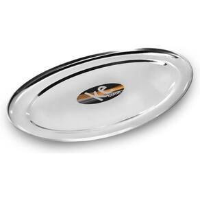 Bandeja Travessa Oval de Aço Inox para servir Porções 28,5 cmIdeal para servir alimentos e saladas com elegância servir porções em Buffet, bares, lanchonetes e restaurantes, ou até mesmo em almoço em família e/ou amigos. Por ser rasa a peça se torna ideal para servir pratos como arroz, camarão, batata, saladas e carnes.Marca: kehome;Material: Aço Inox;Comprimento: 28,5 cm;Largura: 17,5 cm;Ref: 3103-30. Marca: Não Informado