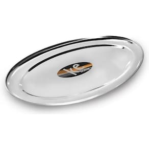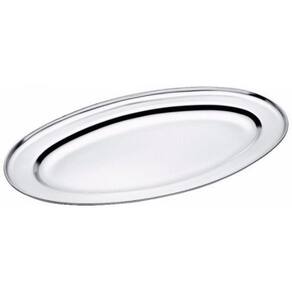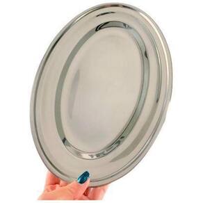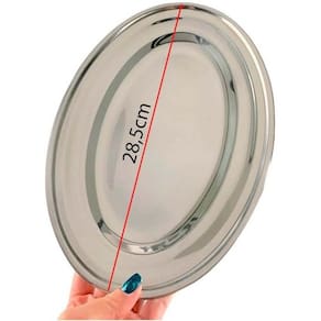 Bandeja Travessa Oval de Aço Inox para servir Porções 28,5 cmIdeal para servir alimentos e saladas com elegância servir porções em Buffet, bares, lanchonetes e restaurantes, ou até mesmo em almoço em família e/ou amigos. Por ser rasa a peça se torna ideal para servir pratos como arroz, camarão, batata, saladas e carnes.Marca: kehome;Material: Aço Inox;Comprimento: 28,5 cm;Largura: 17,5 cm;Ref: 3103-30. Marca: Não Informado