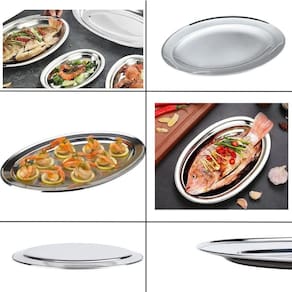 Boa escolha sua cozinha ainda mais bonita com essa travessa em aço inox e seus pratos com aquela apresentação elegante.