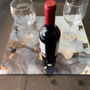 Material Premium: Vidro temperado com acabamento marmorizado, que confere sofisticação e durabilidade. Puxadores em Metal: Práticos e com um toque de requinte. Pés de Silicone Antiderrapante: Estabilidade e segurança em qualquer superfície. Design Sofisticado: Cantos arredondados para um visual moderno e delicado. Dimensões: Largura 40cm x Comprimento 45cm x Espessura 6mm.