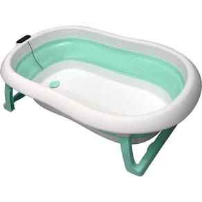 Banheira dobrável. Material ecológico e resistente ao frio. Termômetro para medir a temperatura da água. NÃO INCLUI BATERIAS Mini jarro em forma de baleia. Poltrona redutora com grande grelha antiderrapante. Pode ser utilizado diretamente na banheira, o que o torna ideal para levar em viagem e dar banho no bebê com conforto. Pernas antiderrapantes. Profundidade e reclinação ajustáveis. Tampão de drenagem que muda de cor com a temperatura da água. Capacidade: até 28 litros.
