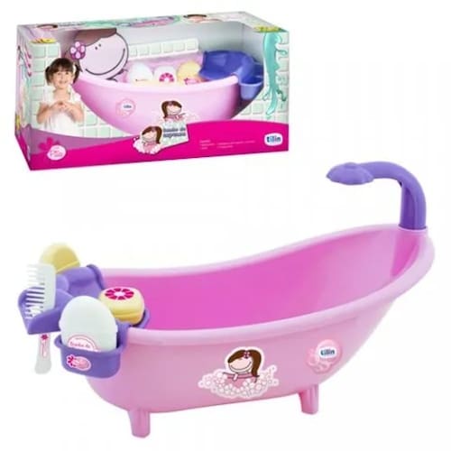 Características PrincipaisDesign Lúdico: A banheira é projetada em um tamanho ideal para as crianças darem banho em suas bonecas ou pequenos bonecos. Geralmente em cores vibrantes, ela simula uma banheira real, com detalhes que remetem a um ambiente de banho.