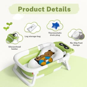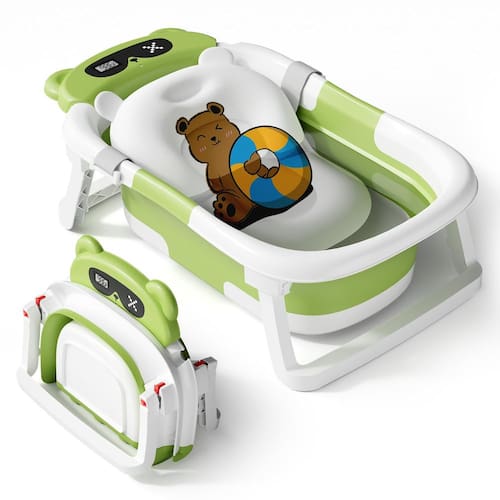banheiras de bebê - Cresça com seu bebê: sob medida para crianças em crescimento, esta banheira para recém-nascidos é adequada para bebês de 0 meses a 18 meses (máximo de 36 kg), garantindo utilidade e valor a longo prazo - Almofada confortável e macia: a banheira dobrável para bebês é projetada com suavidade interna, garantindo que seu pequeno desfrute de uma experiência de banho aconchegante - Guia de temperatura: o termômetro embutido ajuda você a garantir que a água seja perfeita para a pele macia do seu bebê - Compacta e conveniente: projetada para economizar espaço, a banheira do bebê é fácil de armazenar e limpar, encaixando-se perfeitamente em sua rotina diária no banheiro, viagens - Foco na qualidade: feita com material seguro, a banheira infantil não é apenas durável, mas também fácil de limpar, focamos na felicidade do bebê