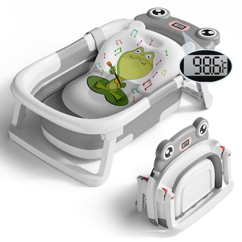 banheiras de bebê - Design que economiza espaço: a banheira Bunwag Baby se dobra facilmente em uma forma quadrada compacta, fácil de guardar espaço no banheiro e no porta-malas do carro, tornando sua casa limpa e fácil de viajar - Design do termômetro: nossa banheira dobrável tem um sensor de temperatura e um plugue de drenagem termossensível, garantindo que a temperatura da água seja sempre segura para o seu bebê - Conforto em primeiro lugar: com uma almofada macia e alças ajustáveis, a banheira recém-nascida oferece suporte para cabeça e pescoço, proporcionando aos bebês uma experiência de banho agradável e segura - Materiais seguros: Feito de materiais PP+TPE de alta qualidade, a banheira do bebê é inofensiva, inodora, garantindo uma experiência de banho segura para o seu recém-nascido - Presente de chá de bebê: Esta banheira versátil para bebês é adequada para bebês de 0 a 1 ano, tornando-a uma surpresa no chuveiro, lembre-se de usá-la sob supervisão de um adulto