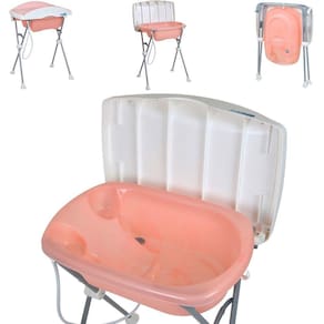 Características técnicas: Saboneteira incorporada Design ergonômico e compacto para a utilização em espaços reduzidos Mangueira para escoamento da água Tampo plástico com trocador acolchoado Indicador de nível máximo de água Plug projetado para rápido escoamento de água Com rodas para transportar Gancho para guardar Suporta até 20kg, sendo 10 litros de água -aproximadamente 10Kg- + o peso da criança -10Kg no máximo-. Fácil de abrir, dobrar e guardar.