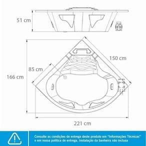 1x Banheira de Hidromassagem Acapulco Gran Luxo 150x211x51cm - P1 - 110v - com Aquecedor Largura: 211 Altura: 51 Peso: 36.3755