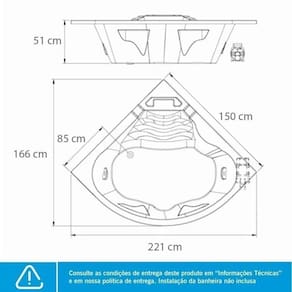 1x Banheira de Hidromassagem Acapulco Gran Luxo 150x211x51cm - P6 - 220v - sem Aquecedor Largura: 211 Altura: 51 Peso: 34.447