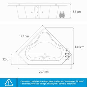 Desfrute do puro luxo e relaxamento com a Banheira de Hidromassagem Quantum da Astra. Deixe-se envolver pelas bolhas suaves de hidromassagem enquanto alivia o e renova sua energia. Seu design elegante e durável combina perfeitamente com qualquer ambiente. Certificadas pela OCP 0018 de acordo com as normas ABNT NBM NM 60335-1:2010 e IEC 60335-2-60:2008-09, conforme a Portaria INMETRO N.º: 371 DE 29/12/2009O produto é submetido a teste de capacidade de água, funcionamento dos componentes e eficiências elétrica e hidráulica. Acomoda até três pessoas. Possui fundo com elevação e piso antiderrapante. Aba Lateral: Não Aba para pés: Não Acompanha Manual de Instalação: Sim Acompanha Motobomba: 01 Air Blower: Não Alças de Apoio: 02 Altura: 58 Ambiente: Banheiro Ambiente Principal: Banheiro Apoio de Cabeça: 02 Cascata: Não Certificado: Certificadas de acordo com as normas IEC 60335-1 e 60335-2-60, conforme a Portaria INMETRO n° 148/2022. Comprimento: 207 Cor do Produto: Branco Cromoterapia: Não Dispositivo de Sucção: 02 Ducha com desviador: Não Entrada de Água: Sim Entrada de Ar: Sim Formato: Canto Largura: 147 Litros: 270 Manual de Montagem e Instalação: https://product-hub-prd.madeiramadeira.com.br/919994/documents/9b4d4cd1-a443-4c44-93c5-4ff786830a9c2101098banheiras.pdf Marca: Astra Necessita Instalação: Sim Origem do Produto: Nacional Peso: 34.375 Possui Pés: Não Quantidade de Jatos da Hidromassagem: 06 Quantidade de Lugares: 03 Quantidade de Minijatos: 06 Recomendações de Uso, Manutenção e Limpeza: Para banho, relaxamento e tratamentos terapêuticos.Para limpeza, utilize flanela e sabão/detergente neutro.NUNCA UTILIZE: produtos a base de álcool, cloro ou amônio. Produtos abrasivos (tipo sapólio, esponja de aço etc). Solvente (tipo acetona, benzina, éter etc).Para manter o brilho da peça utiliza: flanela e lustra móveis. Sistema de Som: Não Sistema instala fácil: Não Tubulação de Água e Ar: Sim Válvula de saída de água: Sim