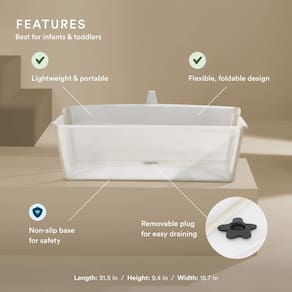 Stokke Flexi Bath GG, bege arenoso - 80 x 40 x 24 cm - Melhor para bebês e crianças pequenas - leve, dobrável e fácil de armazenar - conveniente para usar em casa ou em viagens - BATHTUB GRANDE DOBRÁVEL PARA BEBÊS - A Stokke Flexi Bath X-Grande é uma banheira dobrável para bebês e crianças de até seis anos. Seja no banheiro ou fora de casa, desdobre-o onde quer que você esteja para um banho instantâneo e sem problemas. - Leve e portátil – o design inovador e a forma do banho Flexi tornam simples e conveniente de usar em casa ou em viagens, incentivando momentos mais compartilhados na hora do banho. Feito de materiais duráveis de alta qualidade, dobre a banheira e guarde para facilitar o uso. - Solução para irmãos – Este design é 25% maior do que o banho Stokke Flexi autêntico, dando a você os mesmos recursos excelentes com mais espaço. Além disso, é perfeito se seus filhos gostam de brincar juntos, com espaço para irmãos compartilharem a diversão na hora do banho. - Características práticas: com uma base antiderrapante, o Flexi Bath XL é feito com segurança em mente. Além disso, um plugue de drenagem sensível ao calor muda de cor conforme a água aquece, dando aos pais uma sugestão visual de que a temperatura deve ser verificada. - Versátil – ótima para uso interno e externo, a banheira dobrável funciona para bebês, crianças pequenas e pré-escolares. Forte e resistente com um interior amplo e espaçoso, cabe na maioria das banheiras e chuveiros, facilitando o uso conforme seu filho cresce. - Certificação JPMA – Garantimos a máxima segurança e cuidado ao projetar e fabricar nossos produtos. A Flexi Bath é certificada pela JPMA e atende ou excede os padrões de segurança ASTM.