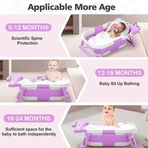 Banheira dobrável para bebês recém-nascidos com termômetro, banheira recém-nascida com 1 almofada flutuante macia. - Materiais seguros premium: Feito de materiais PP+TPE de alta qualidade, nossa banheira de bebê prioriza segurança, durabilidade e tranquilidade. Inodoro e resistente a mordidas, garante que não prejudica o seu bebê. O design de suporte estável de quatro cantos na parte inferior melhora a estabilidade estrutural, minimizando os riscos de capotamento.
