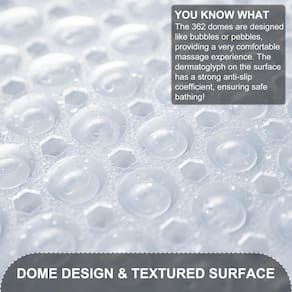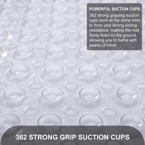 Por que nos escolher: 1. Tapete de banho antiderrapante: 362 ventosas para manter firme no lugar e desempenho antiderrapante confiável. A aderência antiderrapante produz uma sensação suave aos seus pés. O tapete de banheira oferece proteção total para crianças, adultos e idosos. 2. Fácil de limpar: tapete de banho lavável na máquina! Basta colocar o tapete na sua máquina de lavar em água fria com detergente suave e secar ao ar. 3. Tapete de banho de tamanho generoso: o tapete de banheira tamanho XL tem 99 x 40 cm de diâmetro para cobertura máxima no fundo da banheira. 4. Tapete de massagem confortável: o tapete de banheira com colisão e textura também pode ser um tapete de chuveiro de massagem moderno e conveniente para crianças, adultos e idosos. 6. Tapete de banheira versátil: nosso tapete é versátil para banheiro doméstico e é um complemento perfeito para hotéis, academias, saunas, spas e em qualquer outro lugar que você precise de um tapete de banho de bebê premium. Não só o tapete de banho pode ser colocado dentro da banheira, mas também fora da banheira. Além disso, também pode ser utilizado sob a pia, na cozinha. Medidas recomendadas: 1. Recomenda-se deixar o tapete de molho em uma banheira com água morna por 10 minutos antes do seu primeiro uso para fazer o tapete de banho se desdobrar. 2. Antes de usar, umedeça a banheira com um pouco de água e aponte para o tapete central com ventosas na parte inferior, aplicando pressão moderada para fixar as ventosas no chão da banheira. 3. Recomendamos enxaguar e secar o tapete de banho periodicamente. O tapete de banho deve ser pendurado sobre a banheira ou em outro lugar após o uso. Importante: 1. Nossos tapetes de banho funcionam em pisos de banheira de chuveiro lisos e não texturizados. As superfícies texturizadas e revestidas não suportam a sucção adequada à superfície. 2. Não use óleos de banho e pule no tapete da banheira para evitar escorregar. p> - Tapete de banho grande antiderrapante: nosso tapete de banheiro grande antiderrapante oferece cobertura superior com seu tamanho de 101 x 41 cm, cobertura máxima para o piso da banheira. Equipado com 362 ventosas grandes especiais, este tapete permanece firmemente no lugar em superfícies lisas e limpas, tornando-o ideal para casa, spa, sauna, banheiras de ginástica e chuveiros. - Tapete de banheiro funcional: nosso tapete de banheiro versátil apresenta um design abobadado semelhante a pedras, oferecendo uma experiência de massagem durante o banho. A textura irregular na superfície aumenta o atrito e evita escorregões. Além disso, com 327 grandes orifícios de drenagem, a circulação de água é otimizada e uma drenagem mais suave. - Tapete de chuveiro de segurança: nosso tapete de banheiro é feito de PVC de toque macio de alta qualidade, garantindo uma experiência de banho segura e maravilhosa. É especialmente adequado para idosos, crianças e bebês. Além disso, este tapete de banho está disponível em uma variedade de cores para adicionar um toque de cor à decoração do seu banheiro. - Lavável na máquina: convenientemente lavável na máquina e fácil de manter, este tapete de banheira antiderrapante pode ser limpo sem esforço. Basta jogá-lo na máquina com detergente suave e lavá-lo em água fria. Depois, pendure para secar. Recomendamos enxaguar e secar o tapete de chuveiro periodicamente. - Dicas para uso ideal: antes de usar, certifique-se de limpar a superfície completamente. Coloque e pressione as ventosas com segurança antes de cada uso para garantir que o tapete permaneça no lugar. Este tapete de chuveiro é projetado para fixar apenas em superfícies limpas e lisas, portanto, evite usá-lo em superfícies texturizadas, não lisas ou reacabadas.