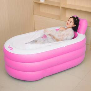 Banheira Inflável Portátil com Encosto 150L VG Plus Rosa