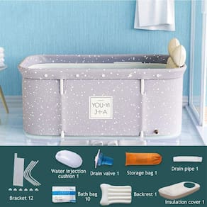 Características: Marca: VG Plus Fácil de instalar, fácil de guardar, fácil de drenar após o banho Acompanha encosto inflável para maior comodidade ( a cor do encosto pode variar, as fotos são meramente ilustrativas ) Possui Válvula de drenagem rápida e fácil Material em PVC resistente Capacidade de 220 Litros Banheira dobrável é mais conveniente para armazenamento, pois é mais fácil de guardar e dobrar A banheira tem apenas 4kg, que é fácil de mover e pode ser usada em várias áreas Tamanho aproximado: 120 cm x 55 cm x 50 cm Acompanha bomba para inflar o encosto A banheira é adequada para todas as estações, banho quente no inverno e banho frio no verão. Marca: VG+