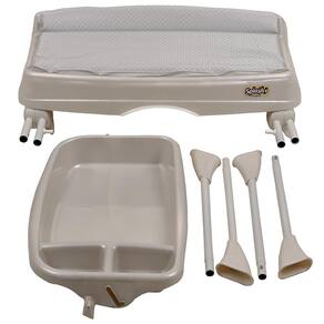 A Banheira para Bebê Splash+ IXBA3060PL98 da Burigotto possui design compacto e chassi com acabamento branco fosco e partes plásticas em tom perolizado. Seu tampo plástico com trocador acolchoado é ideal para pequenos ambientes.
