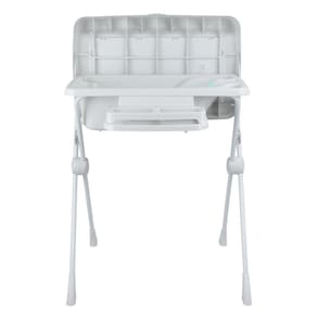 O assento vem acompanhado de um redutor de profundidade para o recém-nascido. Além de segura, é muito prática: tem saboneteira com porta-toalha e mangueira para escoamento da água. Ao fechar o tampo plástico, se transforma em trocador acolchoado.