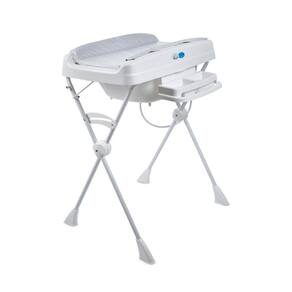1 Porta toalhas. Tampo plástico com trocador acolchoado com proteção lateral. 1 Assento redutor de profundidade para recém nascidos. 1 Mangueira para escoar a água. 1 banheira